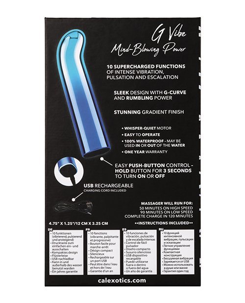The shining Glam G Vibe bullet is a sleek G-curve vibrator packed with 10 functions of high-intensity vibration. Fiercely powerful and whisper-quiet, this gorgeous gradient G bullet is ready to play wherever pleasure takes you. Add a touch of glamour to your toy box with the bold metallic ombr? finish.