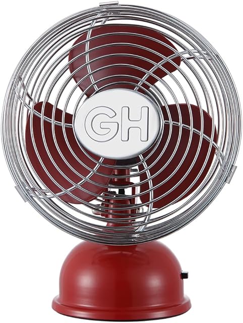 Good Housekeeping 92521 All-Metal 5″ Retro Oscillating USB-Powered Personal Fan, Crimson Red