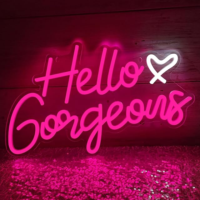 Hello Gorgeous Neon Signs Hello Beautiful Pink LED Neon Lights Dimmable LED Light Sign for Home Wedding Birthday Backdrop Bacelorette Party Decoration, Pink