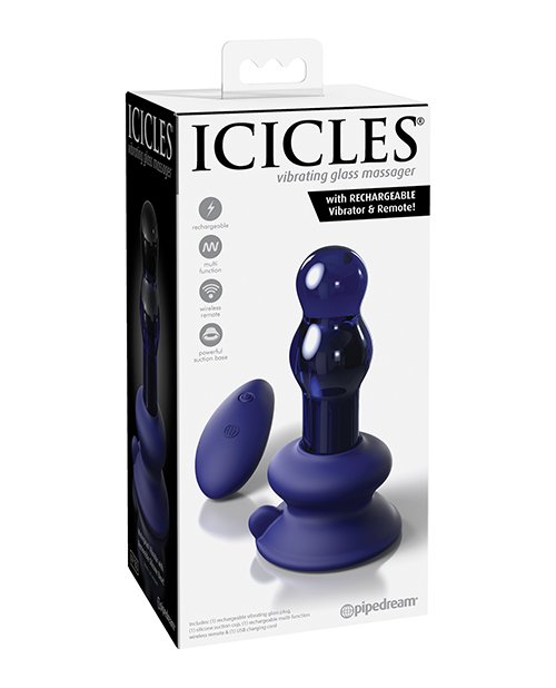 Icicles No. 83 Hand Blown Glass Vibrating Butt Plug w/Remote – Blue