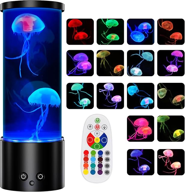 Jellyfish Lamp, 17 Color Changing Jelly Fish Light Mood Lamps for Home Office Room Desktop Decoration, Jellyfish Aquarium Tank Night Light Christmas Gifts for Kids Teens Girls Boys Adults