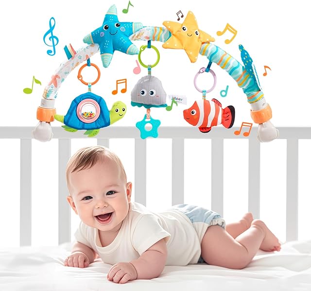 Jollybaby Musical Bassinet Stroller Crib Mobile Toy for Baby 0-6-12 Months, Infant Clip On Arch Hanging Toy with Music, Montessori Sensory Nursery Mobiles Attachment Toy for Newborn Gift – Starfish