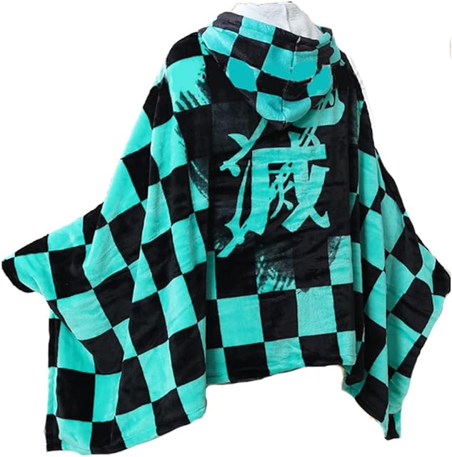 Juejuezi Hooded Wearable Blanket Hoodie Throw Blanket Tanjirou Cosplay Cloak Shawl Wrap Nap Quilt 160×100 cm/63x40in
