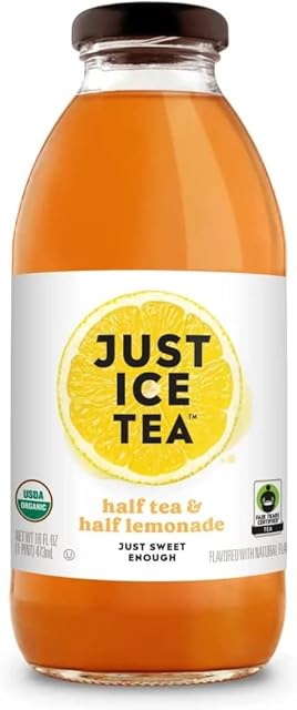 Just Ice Tea Organic Iced Tea, 16 Fl Oz Glass Bottles (Half Tea & Half Lemonade, Pack of 12)