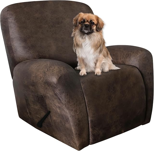 Leather Like Recliner Chair Covers Heavy Duty, 4 Pieces Lazy Boy Recliner Cover for Recliner Chair, Leather Cover for Recliner slipcovers Washable for Pets (Dark Brown)