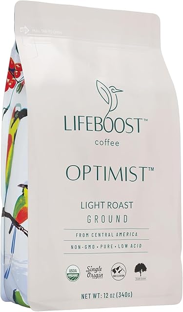 Lifeboost Light Roast Ground Coffee – Non-GMO Single Origin Low Acid Organic Light Roast Coffee – Third Party Tested For Mycotoxins & Pesticides – Ground – 12 Ounces