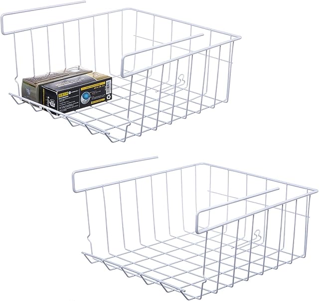 Order Lonians 2-Pack Under Shelf Hanging Storage Baskets – Metal Wire Rack Organizer for Kitchen, Pantry, Cabinet, Bathroom, Desk – Space Saving Shelf Extender (White, Large) today for a best price.