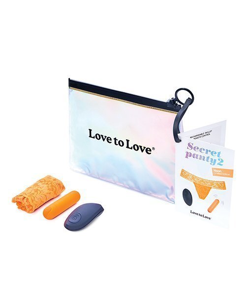 An exquisite naughty gift for couples who love Fun and Sexy sextoys as much as thrills!The vibrating panties remote Secret Panty 2 Love to Love is ideal for remote naughty games. Secret Panty 2 Neon Limited Edition is composed of a mini remote controlled and rechargeable bullet vibrator with 10 vibration modes, a remote control with a range of 7 m, and a fluorescent thong with opening on the front.In order to offer maximum comfort, the split thong has a small inside pocket allowing you to place the mini vibrator and keep it in place, just above the clitoral area.Perfect naughty game accessory to have sensations in unusual places (restaurants, cinema, public places … etc.), Secret Panty 2 increases the bond between your couple! Not only is the open thong sexy but in addition, you can discreetly make it vibrate from a distance thanks to its remote control.It is the ultimate high-tech gadget to give pleasure to your partner in public without anyone noticing.Characteristics :- Powerful Bullet type motor- 10 vibrations- bullet composition: ABS / string: polyamide and elastane- Neon pink thong in one size (expandable)- Bullet and remote control rechargeable by USB cable provided- Proposed in a small hologram storage bag- Brand: Love to love.
