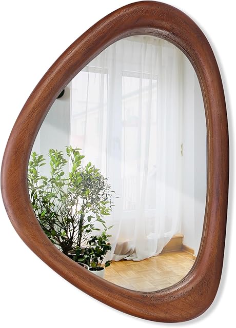MAGFLERUM Irregular Wall Mirror, 15 * 10 inch Asymmetrical Wood Mirrors, Small Wall Mirror, Hanging Vertically and Horizontally. Mirrors for Wall Decor (Black Walnut)