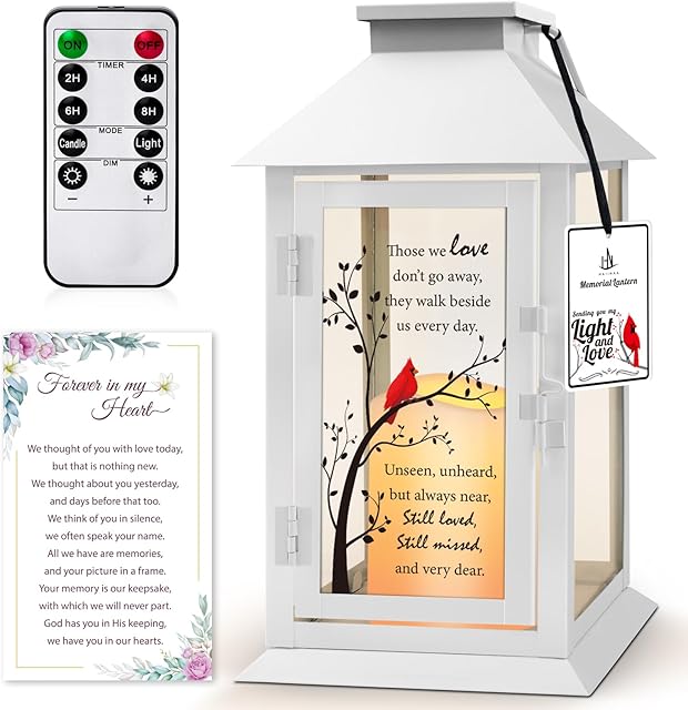 Memorial Lantern Bereavement Gifts in Memory of Loved One – Remembrance Sympathy Gifts for Loss of Mother or Father with LED Candle and Remote