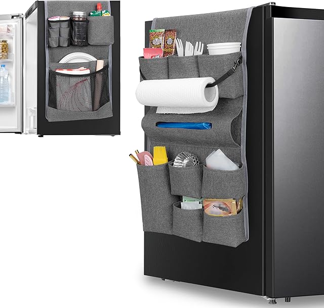Mini Fridge Organizer Dust Cover Hanging Mini Fridge Caddy Organizer Storage Bag for Dorm Office Kitchen Home School Gray