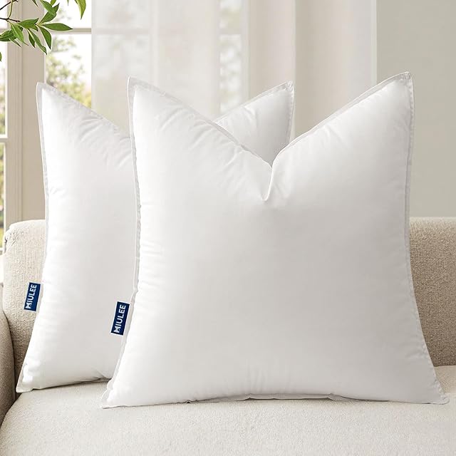 MIULEE 20×20 Throw Pillow Inserts,Set of 2 Decorative Pillow Inserts with Soft Cotton Cover,Fluffy and Cozy Indoor Square Sofa Couch Pillow Inserts White