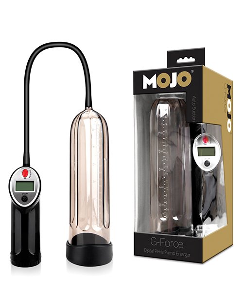 Mojo’s hi-tech G-Force Digital Pump is here for you. Featuring unique automatic styling complete with simple push button controls, this Pump is more than up to the challenge of maximizing your powers of satisfaction. Nice and steady at the sturdy calibrated (in inches and centimeters for you metric folks) cylinder, the G-Force is comfortable in hand and comfortable on you – the longer size covers your cock fully. A soft silicone donut sleeve around the mouth protects and cushions skin – it also works to ensure a super-snug air tight seal. In body safe ABS plastic and silicone materials, the G-Force cleans easily using warm soapy water or a good toy care fluid/foam. Compatible with any favorite water-based lube. The G-Force Digital Penis Pump Enlarger is approximately 9.5″ (24.13cm) insertable and 2.5″ (6.4cm) in diameter
