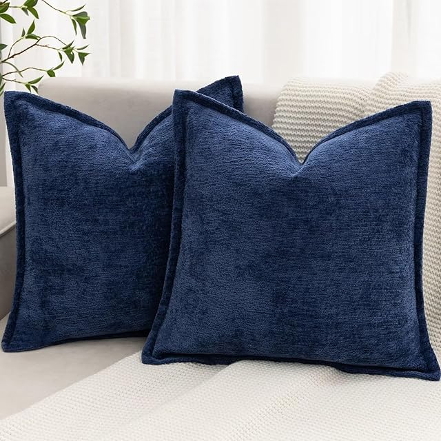 Navy Blue Decorative Throw Pillow Covers 18×18 Inch Set of 2 Cozy Soild Chenille Cushion Cases Soft Textured Square Couch Pillows Cover Boho Accent Farmhouse Pillowcases for Sofa Bed