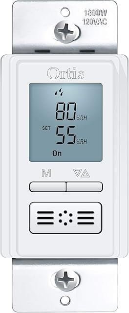 [New Generation] Humidity Sensor Switch, Ortis in-Wall Bathroom Fan Automated Control Switch, Air Moisture Detection, Neutral Wire Required, White, 120V/220V