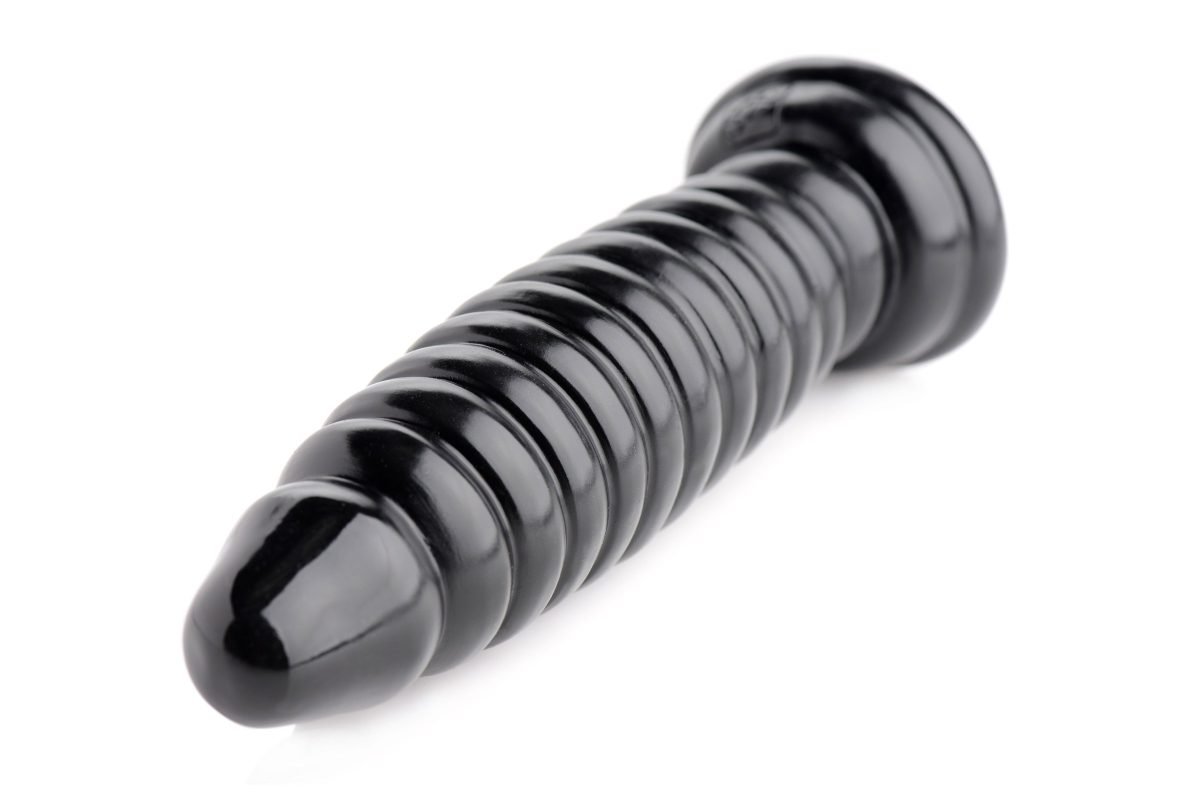 Obsession 11 is a glossy ribbed plug that will keep you infatuated right from the start. The smooth, slightly tapered tip helps you to get started, and before long you get to experience the succession of 11 rings opening you up one at a time. A flared base keeps the plug just where you want it and helps with easy retrieval. You may even want to try a little thrusting action with your favorite lube and enjoy unbelievable sensations as the rings ripple in and out of you. The deep black PVC material adds visual appeal as your nights (and your ass!) are filled with your new Obsession. Measurements: 7 inch overall length, 6.13 inch insertable length, 1.85 inch max insertable diameter Material: PVC Color: Black