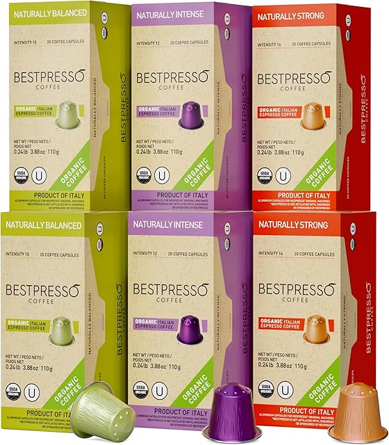 Organic USDA Bestpresso Coffee Aluminum Espresso Pods For Nespresso Original Machine 120 Pack (Variety Pack)