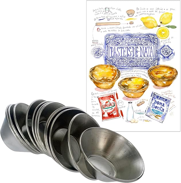Pastel de Nata Tins (Egg Tart Tins) – Made in Portugal out of Galvanized Steel – Includes Pastéis de Nata Print Postcard and Downloadable Recipe – Set of 12 (Standard 3 cm height)