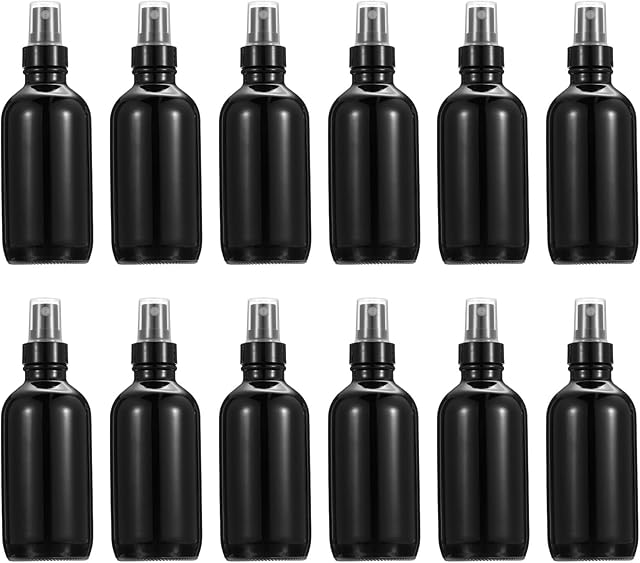 PATIKIL 4oz Glass Spray Bottles, 12pcs Nozzle Leak Proof Empty Water Mist Stream Sprayer for Cleaning Solutions Plants Hair, Black