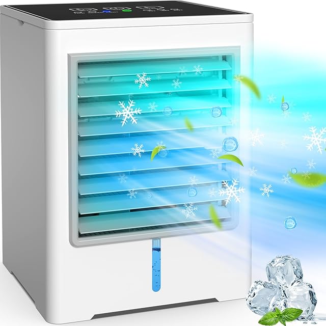 Portable Air Conditioners, Evaporative Air Cooler with 3 Speeds, USB Touch Personal Air Conditioner with 1/3/6H Timing, Mini Desktop Cooling Fan for Room Office Bedroom Camping Car Tent Desk Dorm