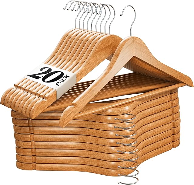 Premium Wooden Hangers 20 Pack – Durable Non Slip Coat Hangers Heavy Duty- Natural Solid Wood Hangers – Clothes Hangers with Chrome Swivel Hooks – Great for Jacket, Dress, Suit Hangers, Home-It