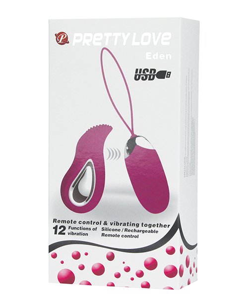 <div>Eden from Pretty Love turns up the fun! 12 powerful modes of vibration and pulsation. Both the bullet and the wireless remote vibrate. The wireless remote has a flexible curved end, perfect for pinpoint stimulation. Remote control has vibrating function can be used in solo play action. Controller has pinpoint ribs and is 45mm wide and 93mm long e or approximately 1.75 inches by 3.66 inches. Bullet vibrator is 33mm wide and 75mm insertable e or approximately 1.3 inches, 2.95 inches.</div>