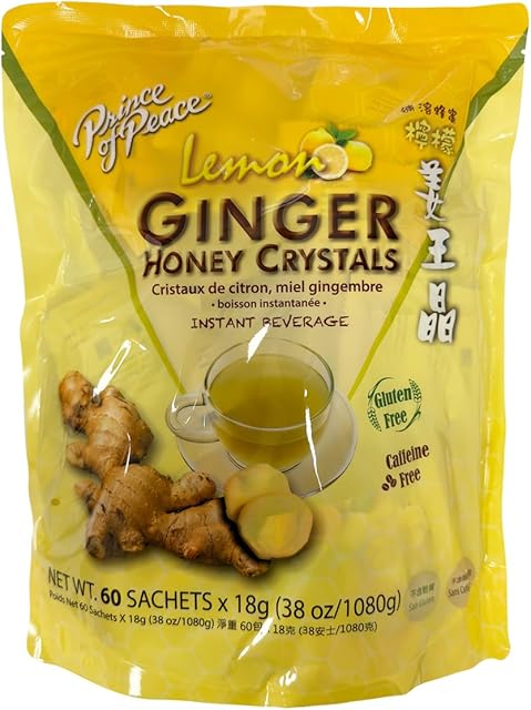Prince of Peace Instant Ginger Honey Crystals with Lemon, 60 Sachets – Instant Hot or Cold Beverage – Easy to Brew – Drink Like a Tea – Caffeine and Gluten Free – Real Ginger