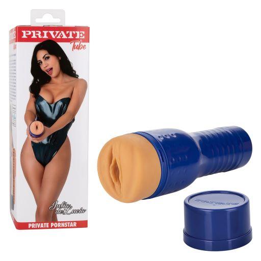 Private Tube Julia De Lucia Pussy Ivory Light Skin Tone from California Exotic Novelties. Dive deep into unbelievably playful fantasies with the fun loving Private Tube Julia De Lucia Pussy. A thrilling textured chamber, real feel opening and adjustable suction power are sure to fulfill your fantasies with your favorite porn star. Keep the good times rolling when your slip this self contained sleeve into your suitcase or overnight bag for a naughty realistic feeling stroking experience wherever your travels take you. Secure before storage with the screw on cap. Whether indulging at home or wherever pleasure takes you, the compact and self contained stroker is the teasing travel companion you have always craved. The premium Real Skin Thermoplastic Rubber TPR is unscented, phthalate free and maintenance free to keep your most sensitive spots, happy and healthy. Specifications: SKU SE-7200-65-3. Color Ivory Light Skin Tone. 1 year warranty. Material type: Polypropylene PP, Thermoplastic Rubber TPR. Features: phthalate free, waterproof, non-vibrating stroker. Measurements: 10.25 inches by 3.5 inches Stroker tube with cap. Bulk weight: 24.4 ounces. Package: 29.7 ounces. Package: 3.8 inches by 3.8 inches by 11.7 inches. Categories: Solo Masturbators, Sex Toys for Men, Porn Star Masturbators, Pussy. 2022.
