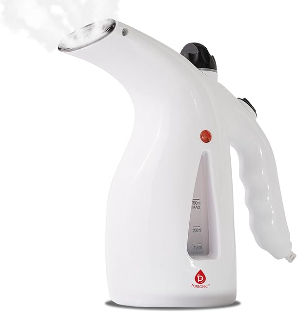 Pursonic Handheld Fabric Steamer for Clothes – Portable Clothes Steamer with 300ML Water Tank – Wrinkle Remover for Garments, Curtains & Bedding – White