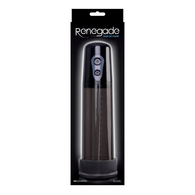 Renegade Man Up Pump Black Penis Pump from NS Novelties. When it is time to rise to the occasion, Renegade’s Man Up penis pump is all you will need for added girth and increased endurance. Featuring a 9 inches, industrial grade acrylic cylinder with a supple Thermoplastic Elastomers TPE donut base for comfort, the Man Up Pump is powered by a robust and silent motor, providing maximum suction with effortless ease. Compatible with all lubricants and easy to clean, the Man Up Pump keeps you standing strong. Please note penis pump requires 2 AAA batteries, not included. Product dimensions 10.4 inches by 2.9 inches by 2.9 inches. Package dimensions 15.8 inches by 3.9 inches by 3.1 inches. Package weight 12.70 ounces. Product materials Acrylic, ABS plastic.
