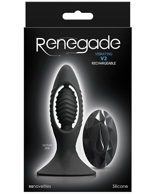 Renegade's innovative V2 plug features an exposed bullet design for powerful vibrating sensations! Made of soft platinum silicone, it includes wireless remote for solo use or with a partner. Rechargeable. Suitable with all lubricants.