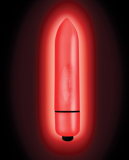 Neon Nights Glow In The Dark Red Quasar Halo 7 Speed Bullet Vibrator from Rocks Off Toys. The Color of Love. Bring some orgasmic glow into your sensual play with Neon Nights by Rocks Off. Feel your temperature rise as you flick through the 7 exciting functions. Fun, funky and full of power, get ready to ignite your pleasure zones! Features: RO 80mm. 7 functions. Precision stimulation. 100% waterproof vibrations.