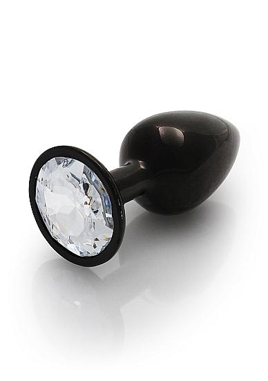 Round Gem Butt Plug Small Gunmetal Diamond