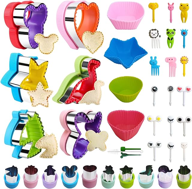 Sandwich Cutter and Sealer Set for Kids 41Pcs, Decruster Sandwich Maker Holiday Heart Cookie Cutters Fruit Vegetable Cutter Bento Lunch Box with Dinosaur Mikey Butterfly Shapes for Boys Girls