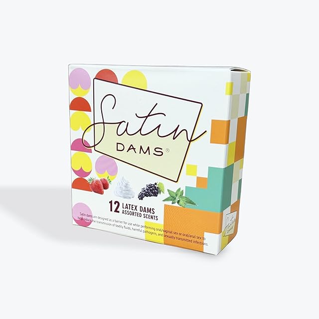 Satin Dams? Pack of 12 Assorted Latex Oral Dams | Grape, Strawberry, Vanilla and Spearmint Scented Dental Dams | Hermetically Sealed Dams