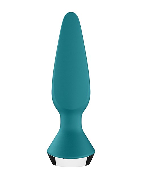 Plug-ilicious 1 Petrol Plug Vibrator from Satisfyer. The deep vibrations of the plug are driven by 2 motors that can be controlled intuitively via app. The Plug-ilicious 1 will also impress you with its soft silicone surface, conical shape and secure wide base. Compatible with the free Satisfyer App available on iOS and Android. App offers an unending range of programs. Preset programs can be edited. Can also be used without the app. The 2 motors can be controlled separately, allowing for numerous vibration combination options. Super strong deep vibration. Suitable for all genders. Body friendly silicone. Waterproof IPX7 vibrations. Whisper mode. USB rechargeable, magnetic USB charging cable included. Easy to clean. Dimensions length 5.3 inches, width 1.6 inches. 15 years warranty. Satisfyer – Anal Play, Butt Plug, Prostate Massager, P-Spot Stimulator, Plug, Vibrator, Couples Play, Solo Sex. 2022.
