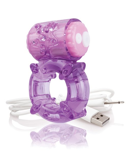 A thick, stretchy cock ring with a vibrating motor, The Charged BigO simultaneously provides erection enhancement and clitoral stimulation. With a single charge from the included USB cable, the BigO motor can stimulate at three speeds plus pulsation for over 60 minutes of mutually-pleasing playtime. Developed with lab-tested and body-safe SEBS and ABS plastic, the Charged BigO is known for its comfort as well as its quieter sound; it makes a rock-solid addition to your intimate moments. 3-speed motor with bonus pulsation. USB charge cable included. From Screaming O.