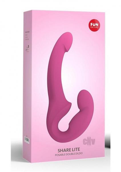 SHARE LITE features a lightweight inner core that makes it easy for your muscles to grip without the help of a harness. It also boasts an adjustable hinge that readily adapts to different positions. The girthy giver`s end has a G-spotting tip, while the receiver`s end is the perfect length for thrusting. Plus, the toy is perfectly balanced to stay in place without slipping, no matter how vigorously you play.