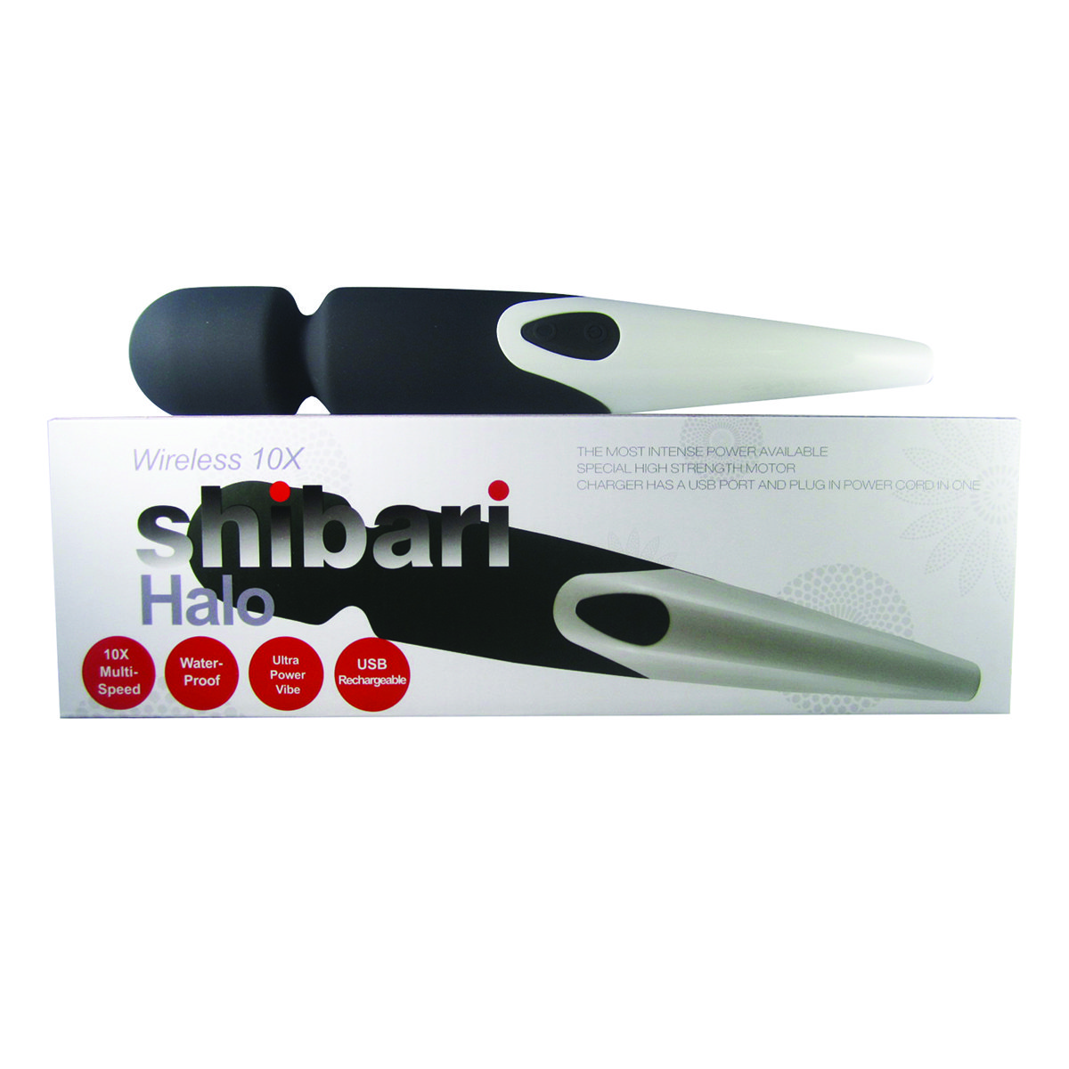 The Shibari Halo is a 10-speed waterproof power massager with a sleek design. This wand is wireless and comes with a rechargeable battery. The charging prong can be taken off to reveal a USB cord that can also be used as a charger.