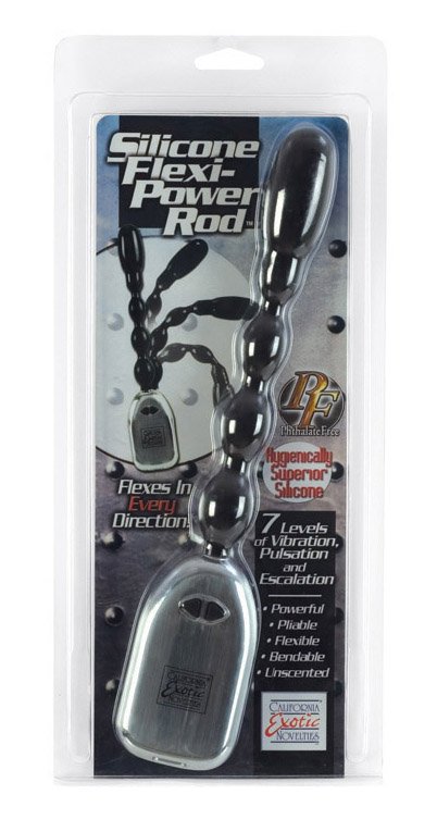 Silicone Flexi Power Rod flexes in every direction. High tech Silicone power rod flexes in a multitude of directions. Features 7 infinite and powerful levels of vibration, pulsation, and escalation! Safe and pure for body and pleasure. Made using phthalate free, non-toxic materials ABS plastic control, Silicone power rod. Rod stimulator measures 8 inches long by 1.25 inches wide. Vibrating sex toy requires 3 AA batteries, not included. Always clean before and after use plus between partners. To increase the life of all sex toys remove the batteries prior to storage. Category: For Women, For Men, Anal Toy, Anal Toys, Probe, Probes. Silicone Flexi Power Rod is a registered trademark for California Exotic Novelties. Sex toys and sexual wellness.