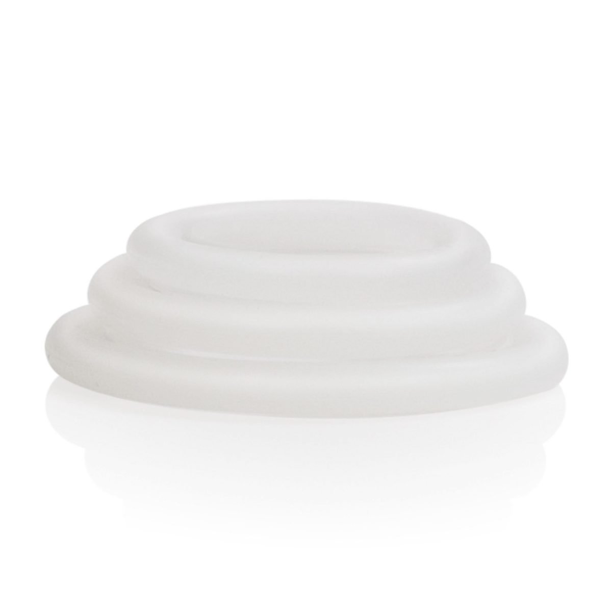 The comfortable enhancers are made from unscented, 100% pure Silicone and are supplied in a set of three sizes. The medium, large, and generous extra large c-rings are designed for erection stimulation and stamina maintenance. The pliable, sleek, and smooth rings comfortably slip onto the erect penis for arousal and stimulation support.