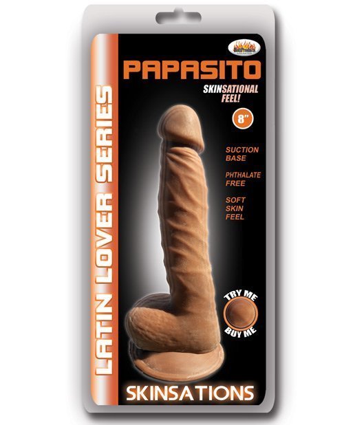 The latin lover series from Hott products will satisfy your every need. These realistic skin dildos absolutely look and feel like the real thing! Comes complete with super suction cup base which will stick to nearly any smooth, flat surface for a passionate pounding good time! You can also enjoy SKINSATIONS in the shower, hot tub, or spa and turn bath time into play time! Papasito is 8 inches long by 1.75 inches wide.