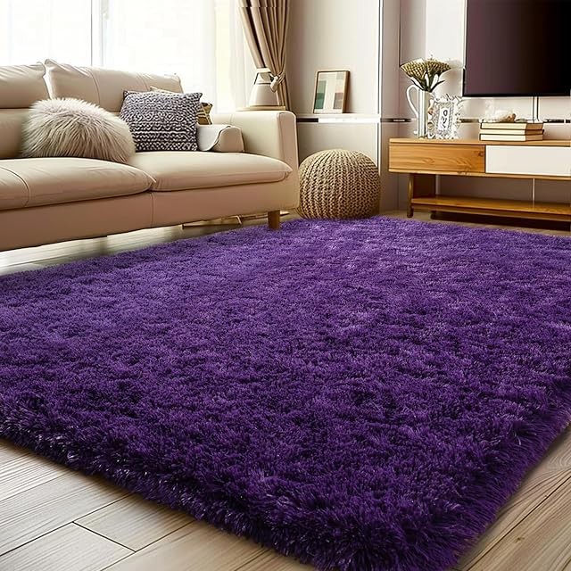 Soft Shag Rugs for Bedroom, 4×6 Purple Fluffy Shaggy Rugs for Living Room Nursery, Luxury Modern Plush Carpet Girls Boys Kids Room Dorm Indoor Home Decor, Upgrade Non-Slip