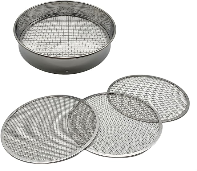 Soil Sifter Set with 3 Sieve Meshes for Rock and Sand – Stainless Steel