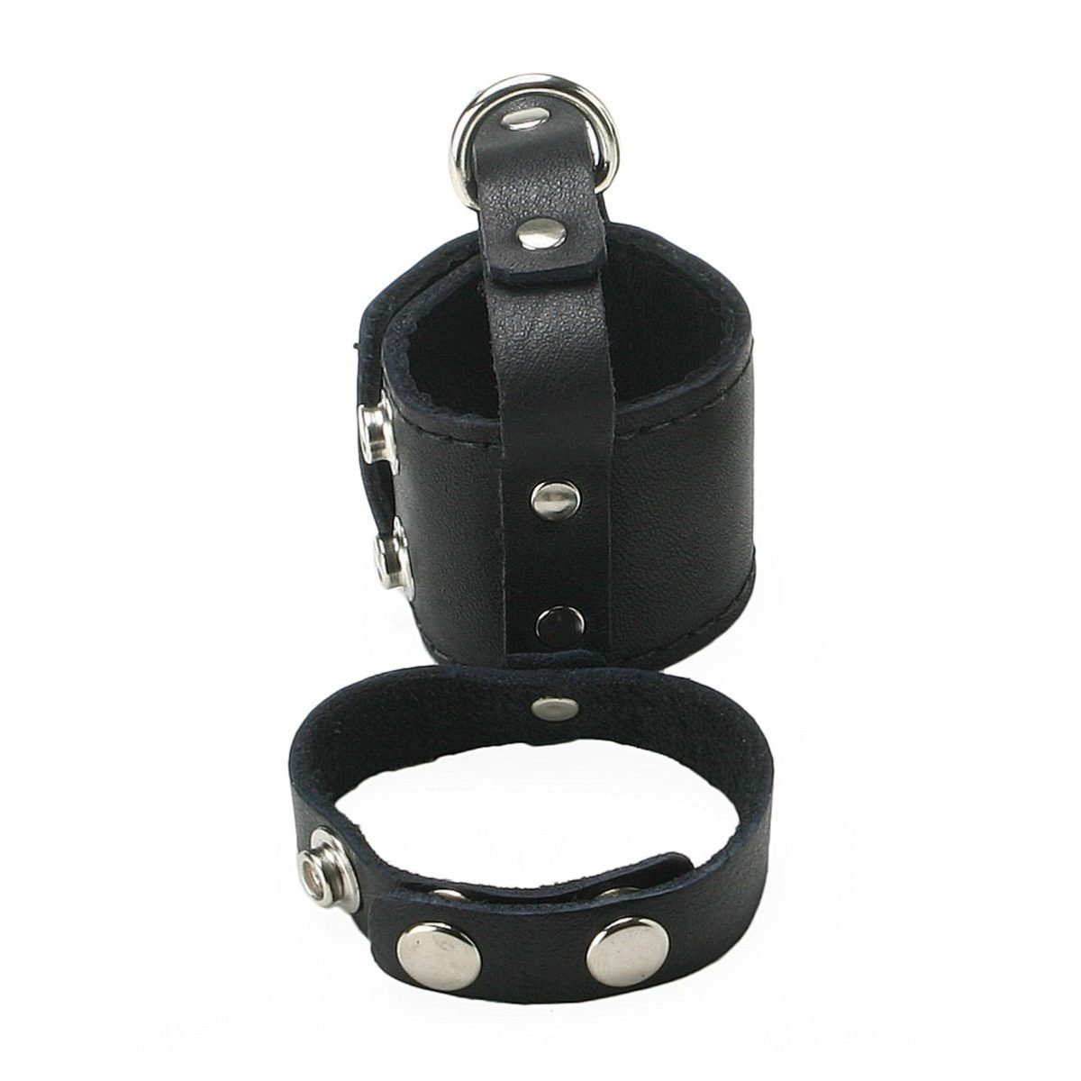 This cock strap and harness comes in two different sizes in order to satisfy varying ball stretching preferences. The different snapping options allow for more variation in wear. Made of soft leather and cold steel this product is a perfect blend of comfort and functionality. For more stretching options the ring at the bottom of the device is ideal for clipping on additional weights. You could even attach a leash. This cock strap and ball stretcher comes in two sizes, 1.5 inches and 2 inches.