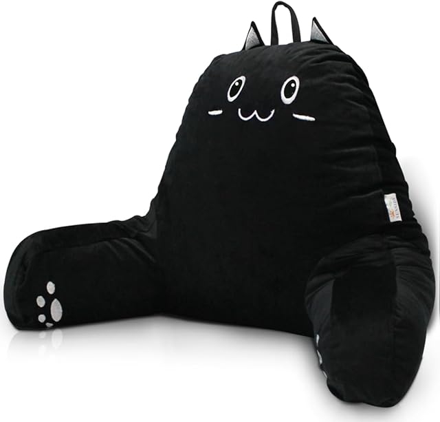 SUNSIDE Kitty Reading Pillow for Sitting in Bed, Cute Back Pillows for Adult and Children, Shredded Memory Foam Pillow with Arms, Cat Design Bed Pillow, Back Support Pillow with Washable Cover