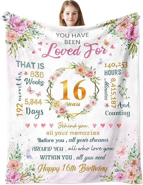 Order Sweet 16 Gifts for Girls, Gifts for 16 Year Old Girl, 16th Birthday Gift for Girls, Sweet Sixteen Year Old Girl Birthday Gift Idea, Present for 16 Yr Old Throw Blanket 60″x50″ today for a best price.