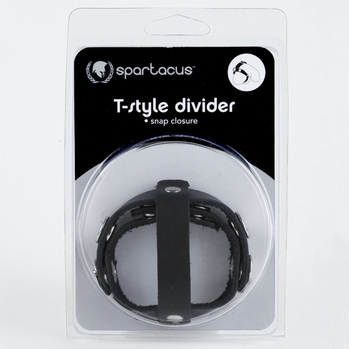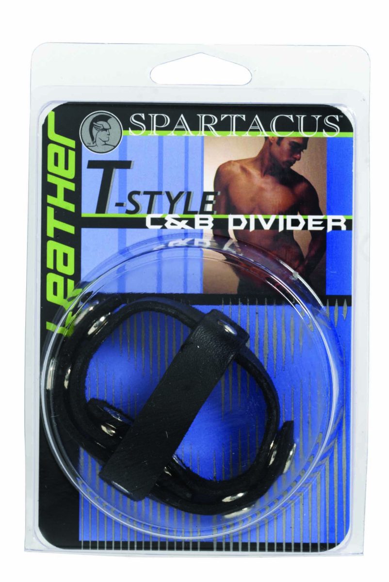 Spartacus Leather Cock Gear Black T Style Cock and Ball Divider. Serious gear for those who are serious about quality. They have built our reputation on fine leather worked by hand and designed with your pleasure in mind. A T Style divider firmly separates the testicles, while also providing the pleasurable effects of a cock ring. Soft oil tan leather. Snap closures. Adjustable. Easy to use just snap in place. Spartacus A Passion For Quality Catalog page 30. Made in the USA.