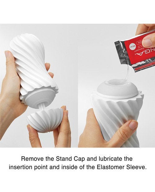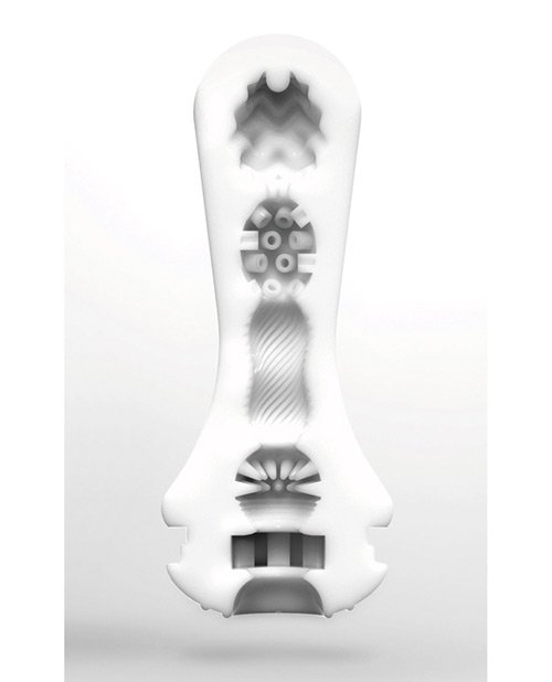 TENGA's latest malleable material has allowed them to create a brand new concept and sensation called the TENGA FLEX. This is the Silky White version of FLEX. The FLEX's spiral-ribbed outer case creates a "spinning stimulation". Simply cover the air hole at the top of the item after insertion, and the FLEX will wind and unwind, creating a spiraling movement as you stroke. Additionally, the FLEX's malleable casing allows you to squeeze, twist and grip the item to directly change the stimulation to suit your desire!The first chamber has small pointed nubs. The second chamber has spiraling micro ribs. The third chamber has larger crater like nubs. The end chamber has a zig-zag design along with a stimulation "stinger" at the very end. Enjoy the dynamic pleasure made possible with TENGA latest material and intricate design in their FLEX series. Lose yourself in spiraling sensations! Find release with TENGA's new TENGA FLEX sleeve. Material Plastic, TPE Dimension (L x W x H in.) 6.25 x 2.9 x 2.9