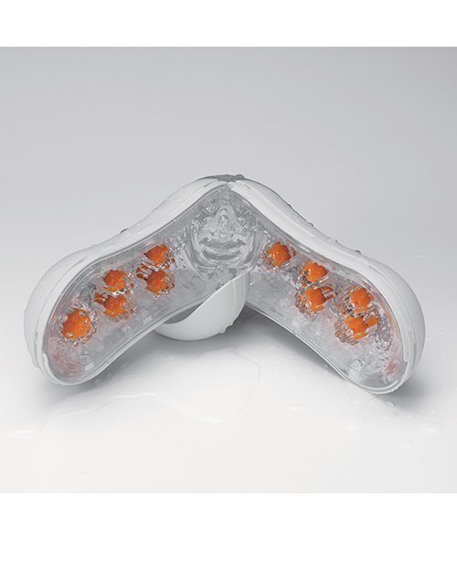 Bouncing orbs await inside this male masturbator. Stimulating orbs are suspended inside the textured elastomer. Use the pressure pads to directly control the intensity of stimulation. The internal pressure, textured details and flexible orbs combine to create a sensational experience. Use the cap as a stand for hygienic drying. Waterproof and reusable.